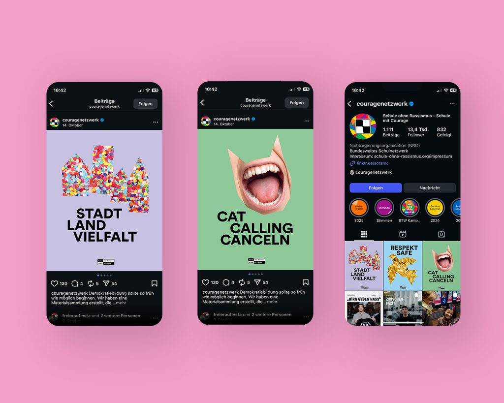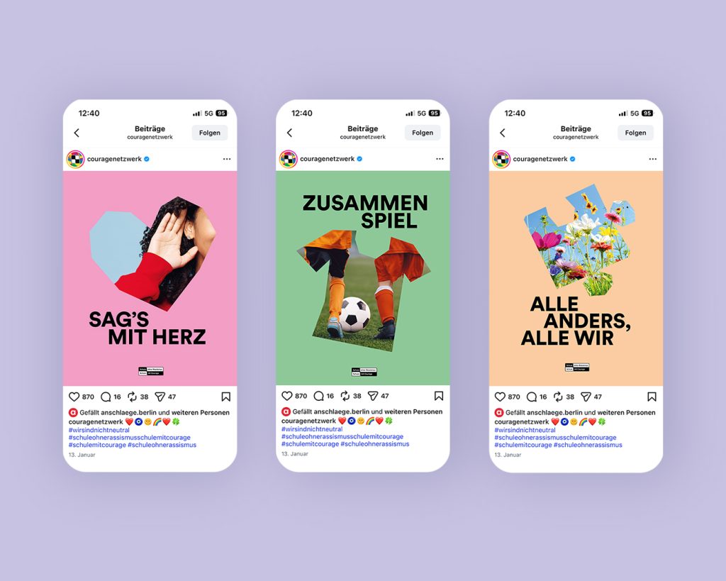 Acht Plakate, differenziert für Kinder und Jugendliche, bilden ein skalierbares System, das bundesweit funktioniert und lokal angeeignet werden kann. Kommunikation wird so zum Werkzeug im pädagogischen Prozess.